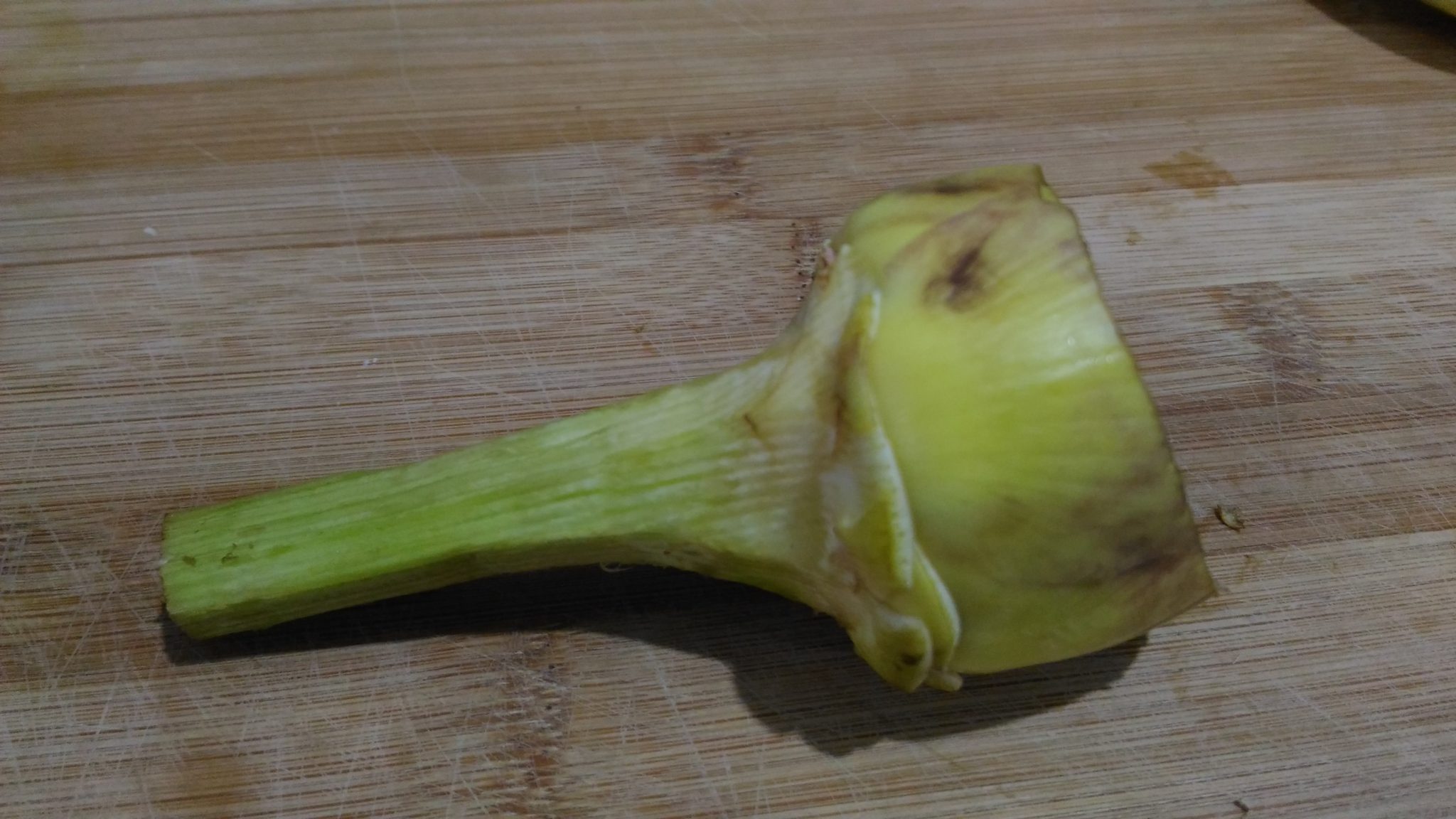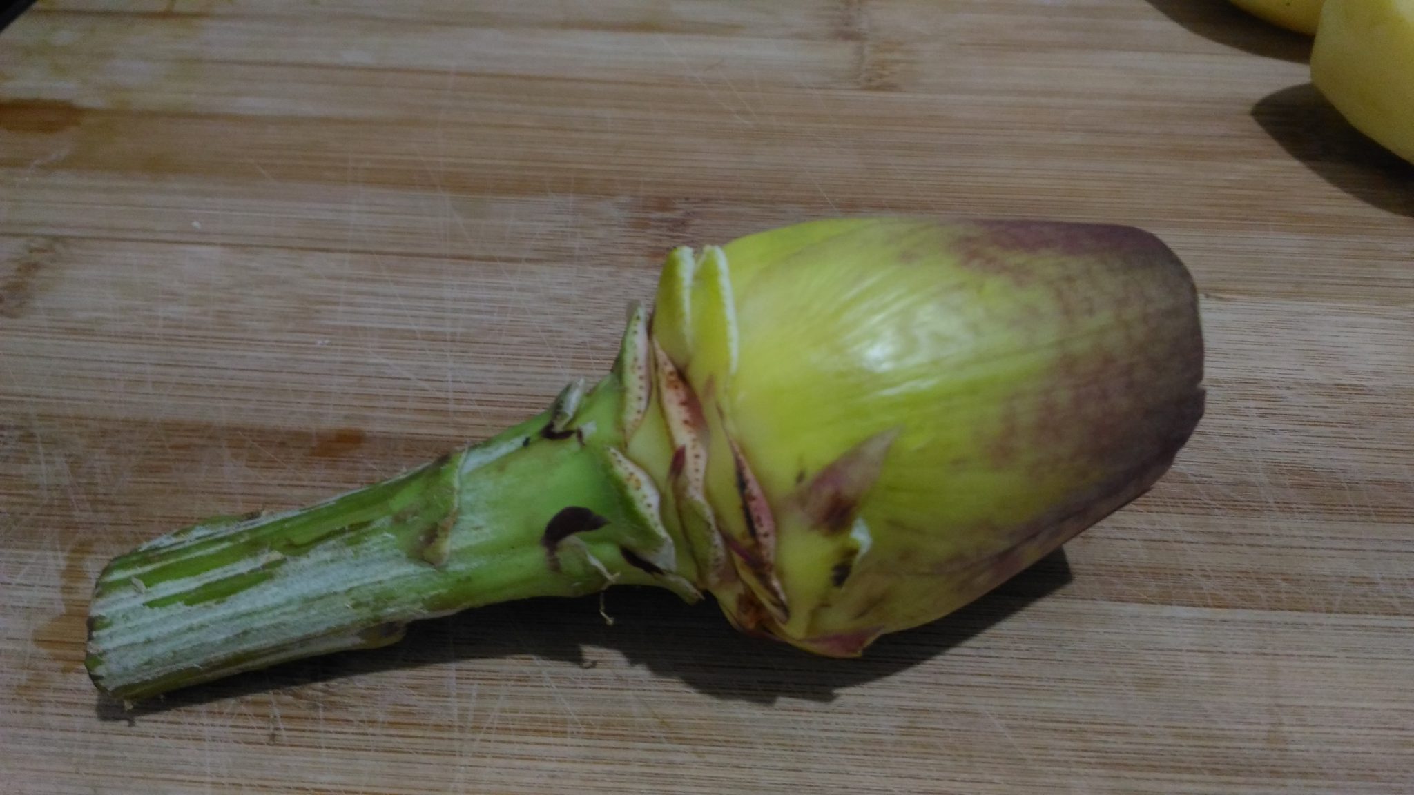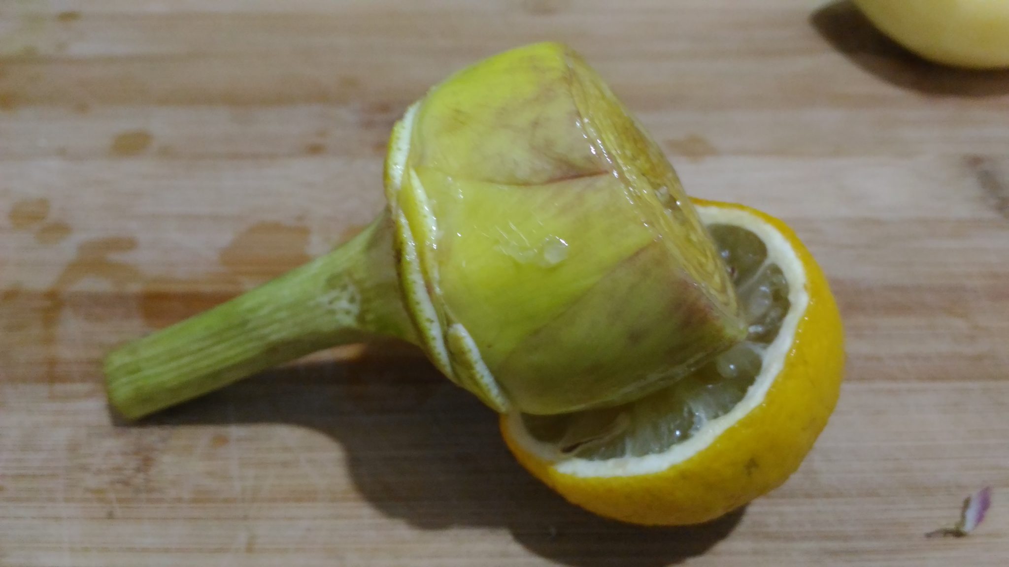 Strofinare il carciofo con il mezzo limone, in modo che non annerisca