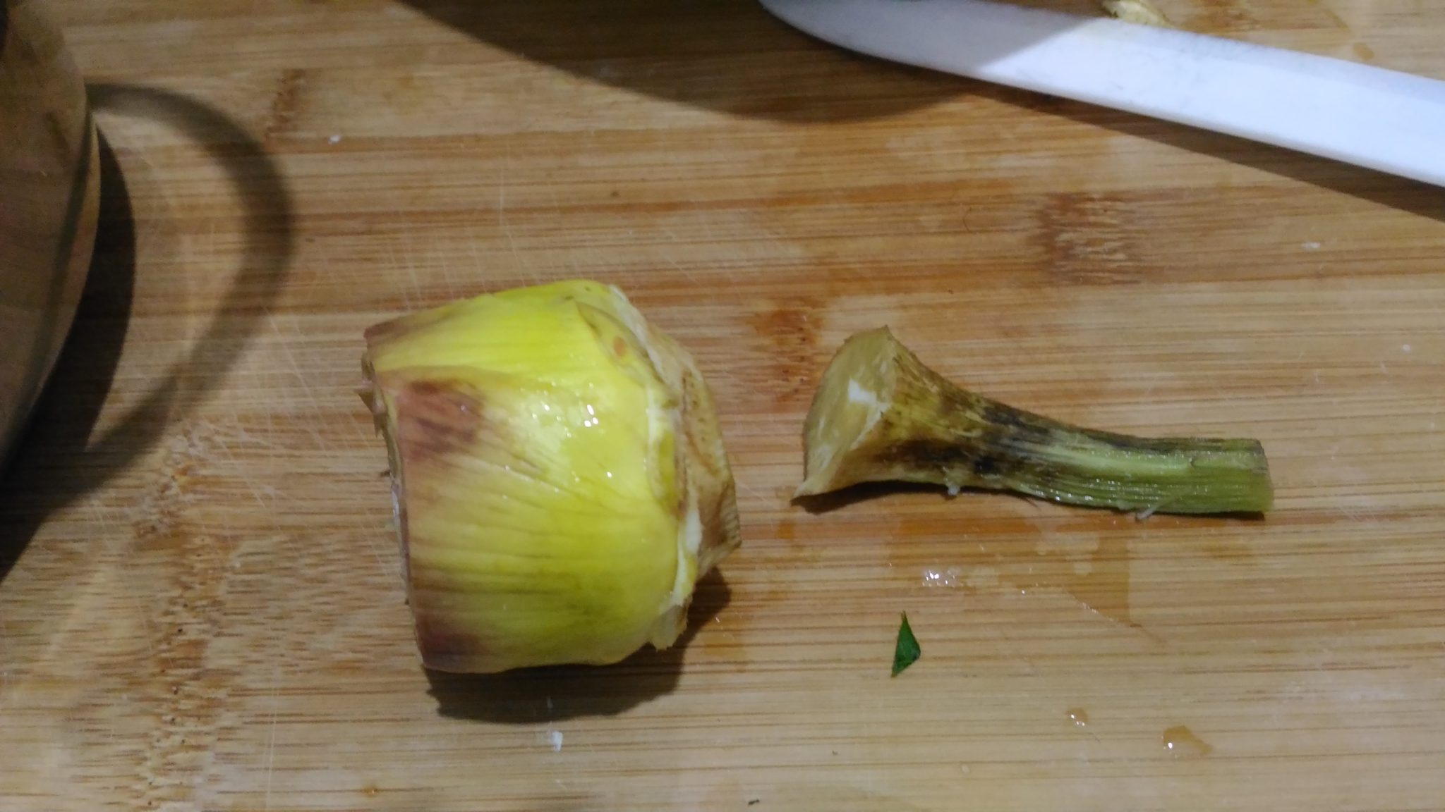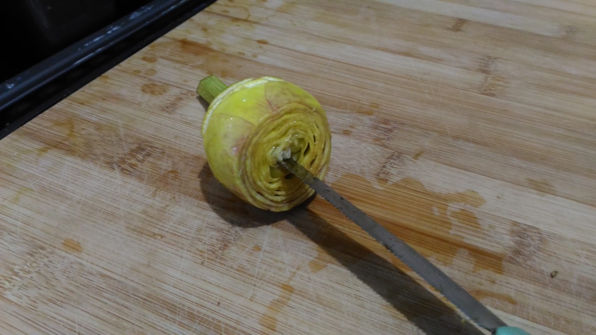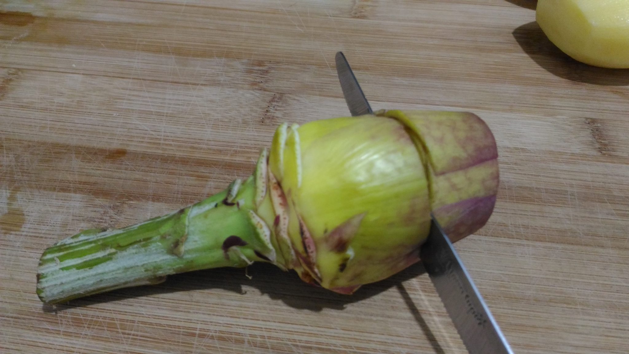 Con un coltello tagliare la parte superiore del carciofo