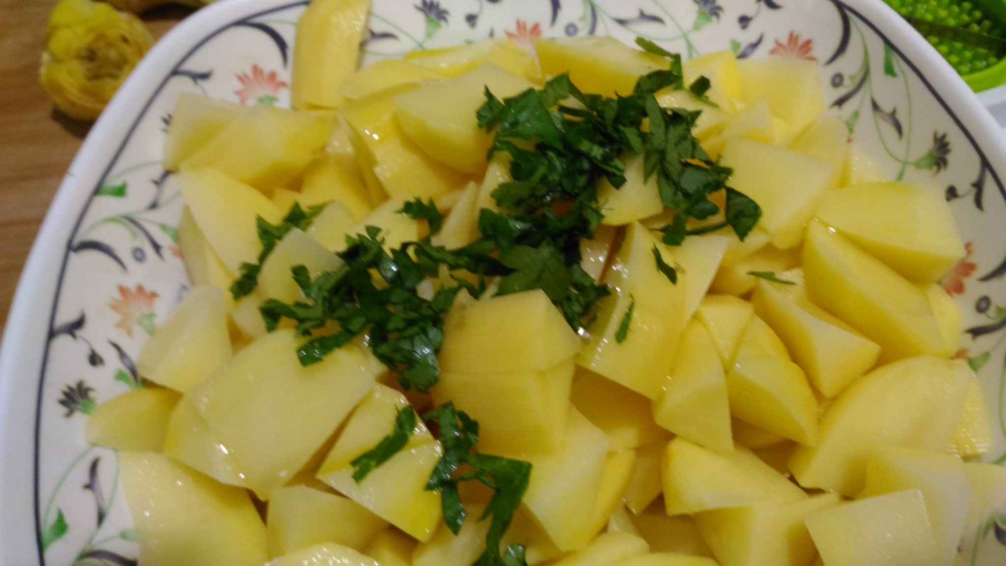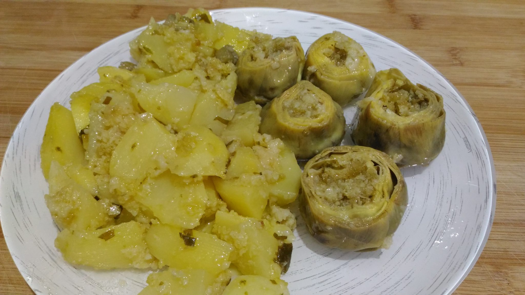 E’ importante sapere che le patate con i carciofi appena spento il fuoco, non vengano toccati, solo una volta freddi si possono impiattare altrimenti diventa tutta una poltiglia