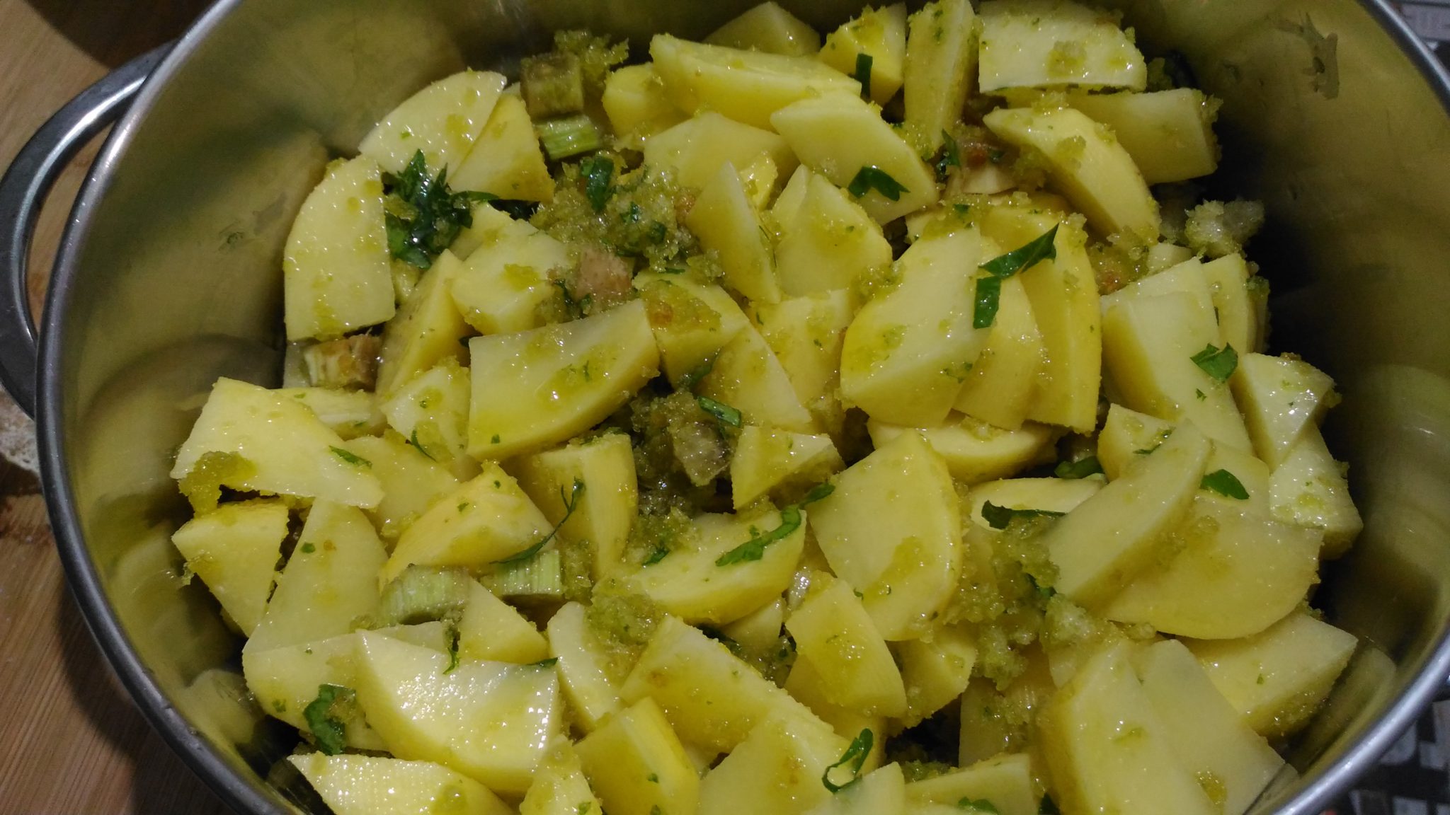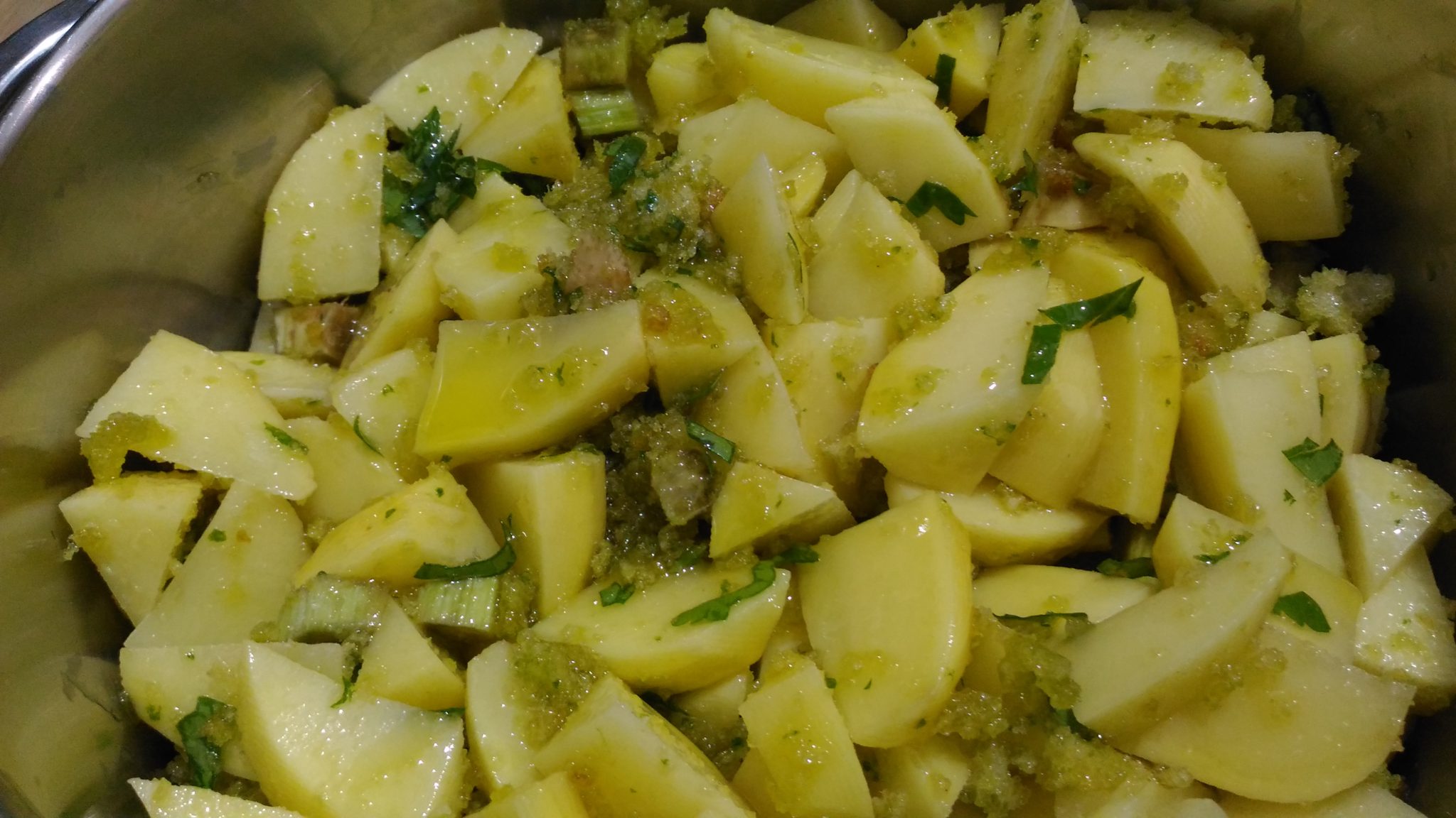 Aggiungerli alle patate e mescolare