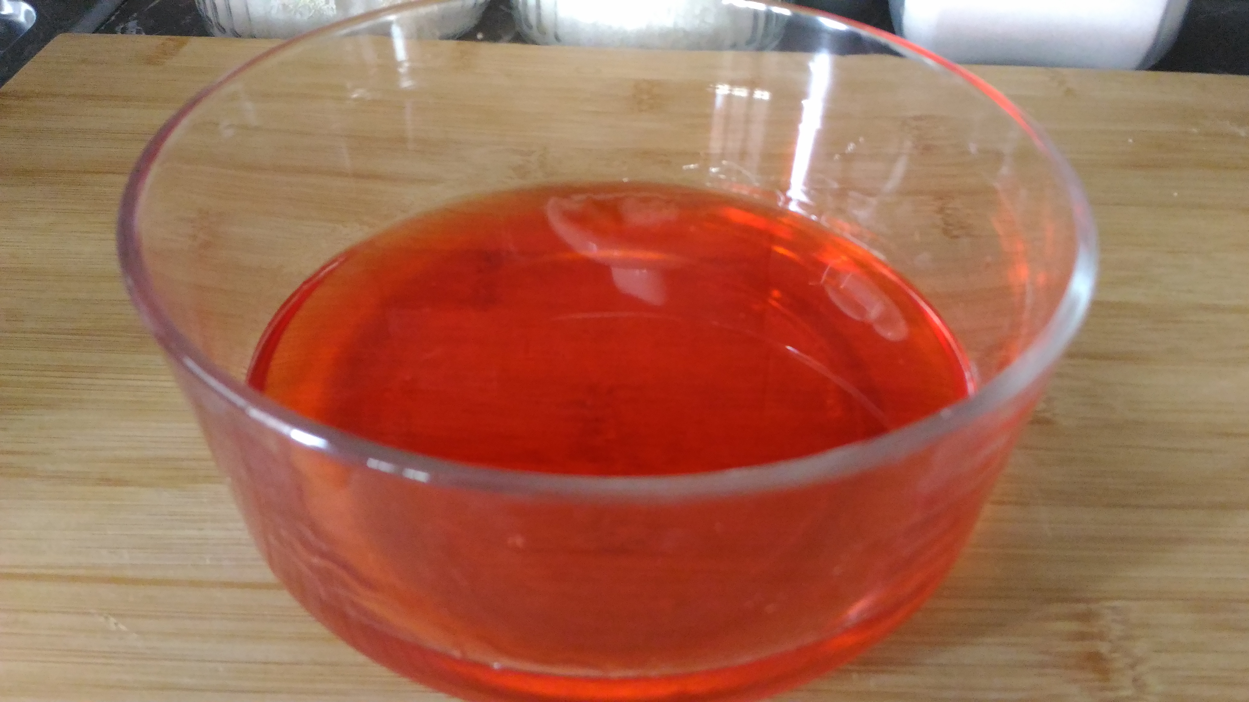In una ciotola mettere il bicchierino di alkermes insieme al bicchiere di acqua.