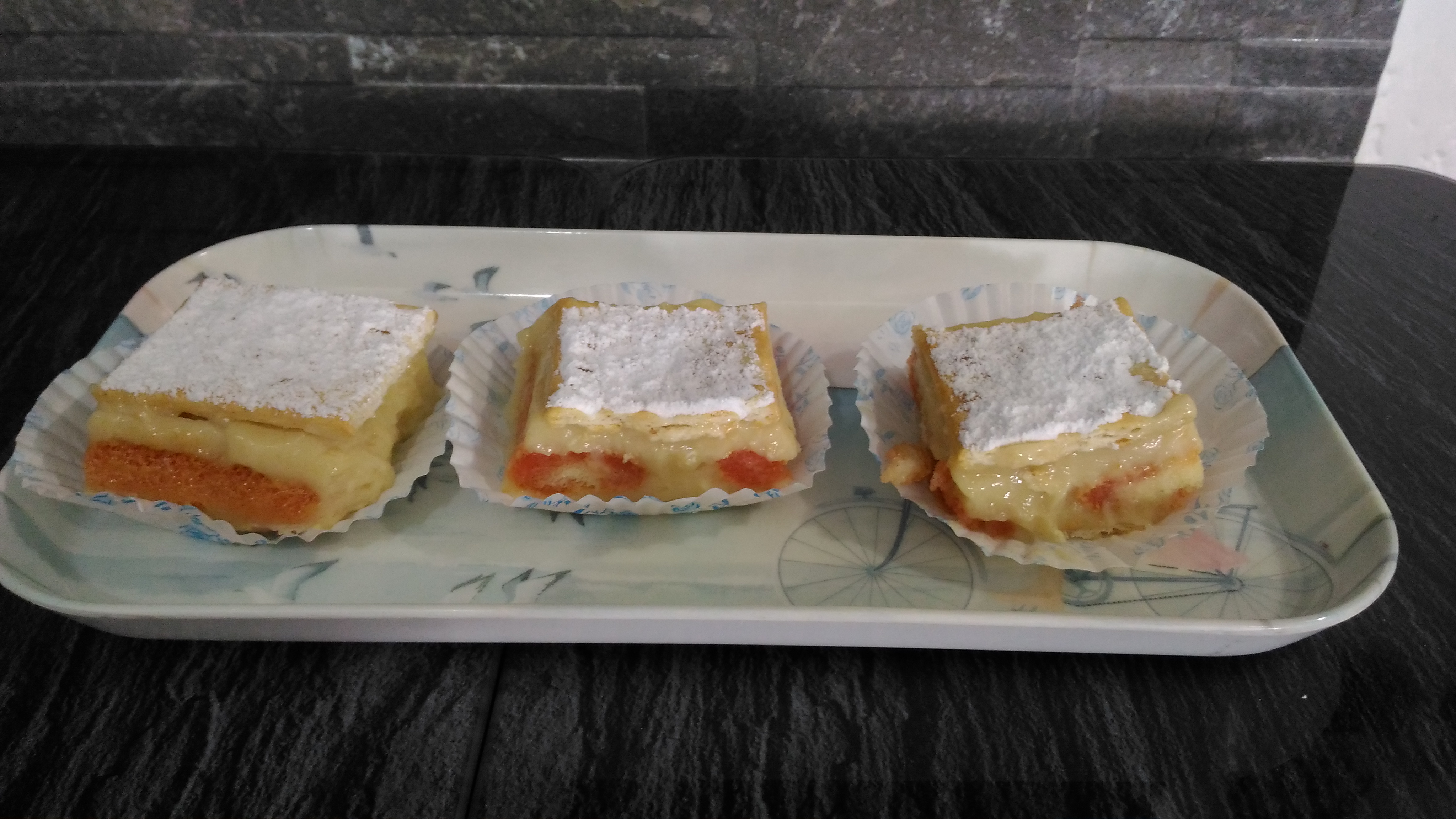 Infatti in questa ricetta ho sostituito il pan di spagna con i biscotti savoiardi e le basi di pasta sfoglia con dei crackers non salati.