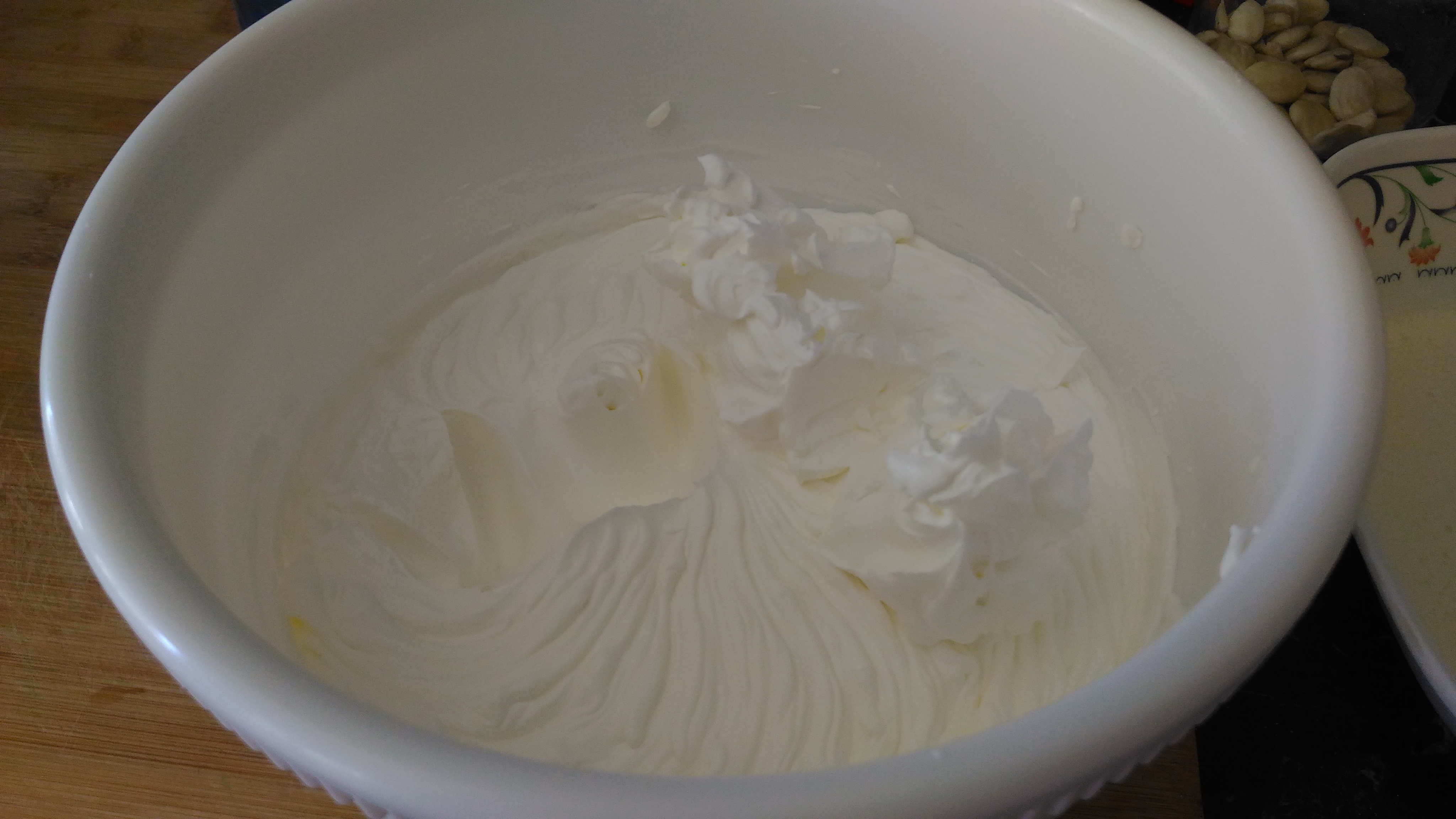 Adesso preparare la crema della torta fredda all’amarena montando la panna ben ferma.