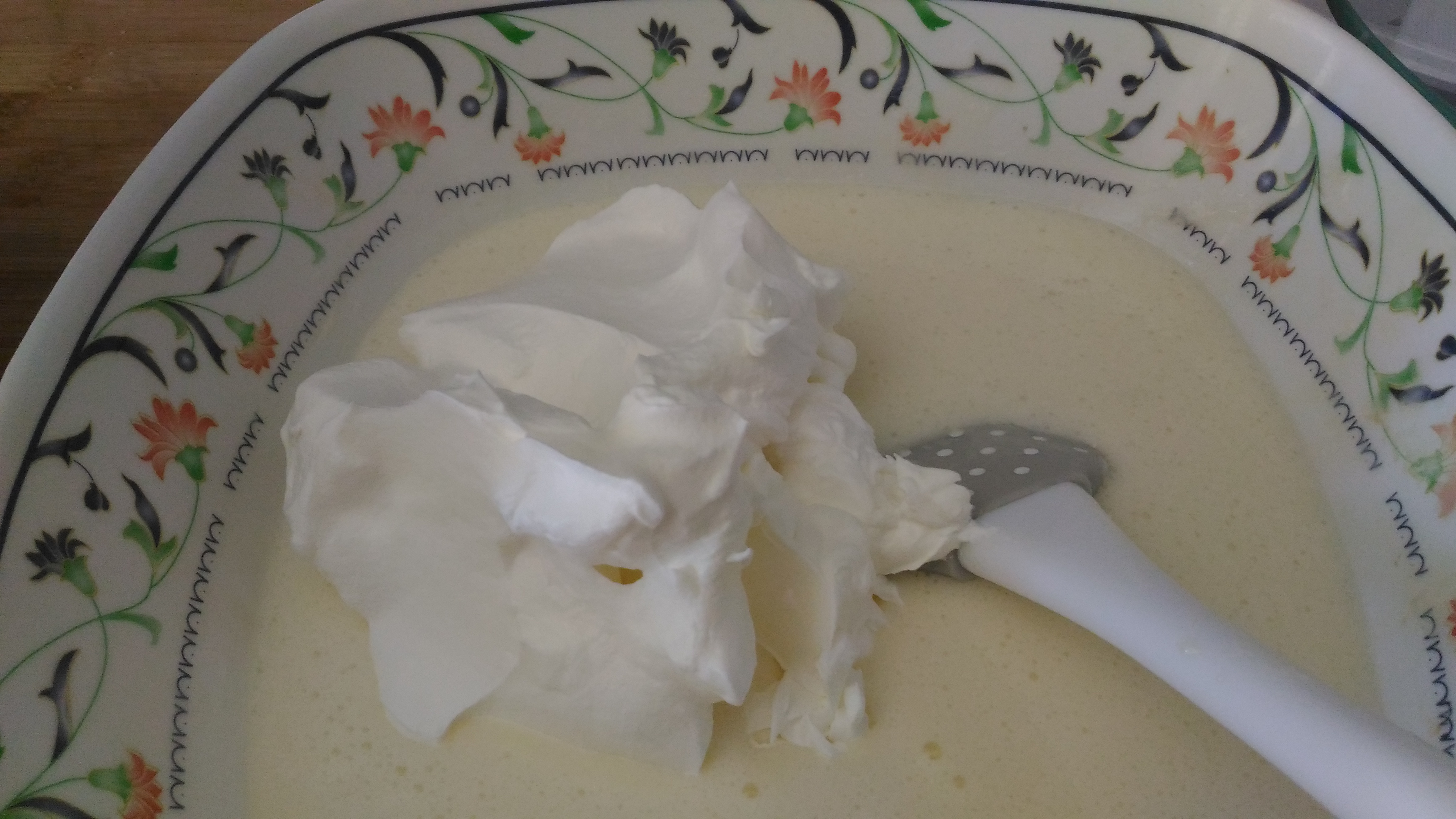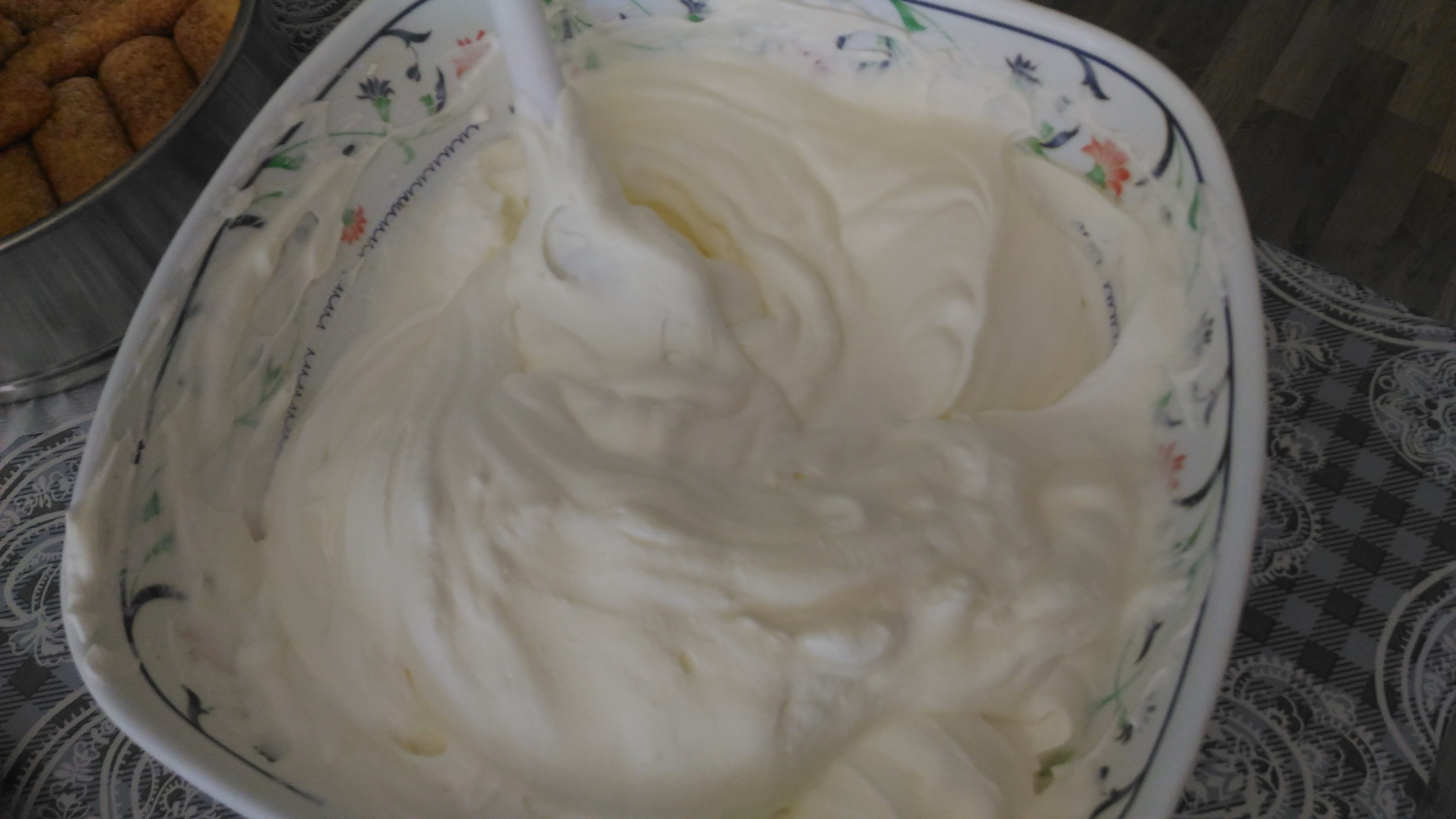 Unire la panna alla crema di mascarpone e latte condensato con movimenti dal basso verso l’alto per non smontare la panna.