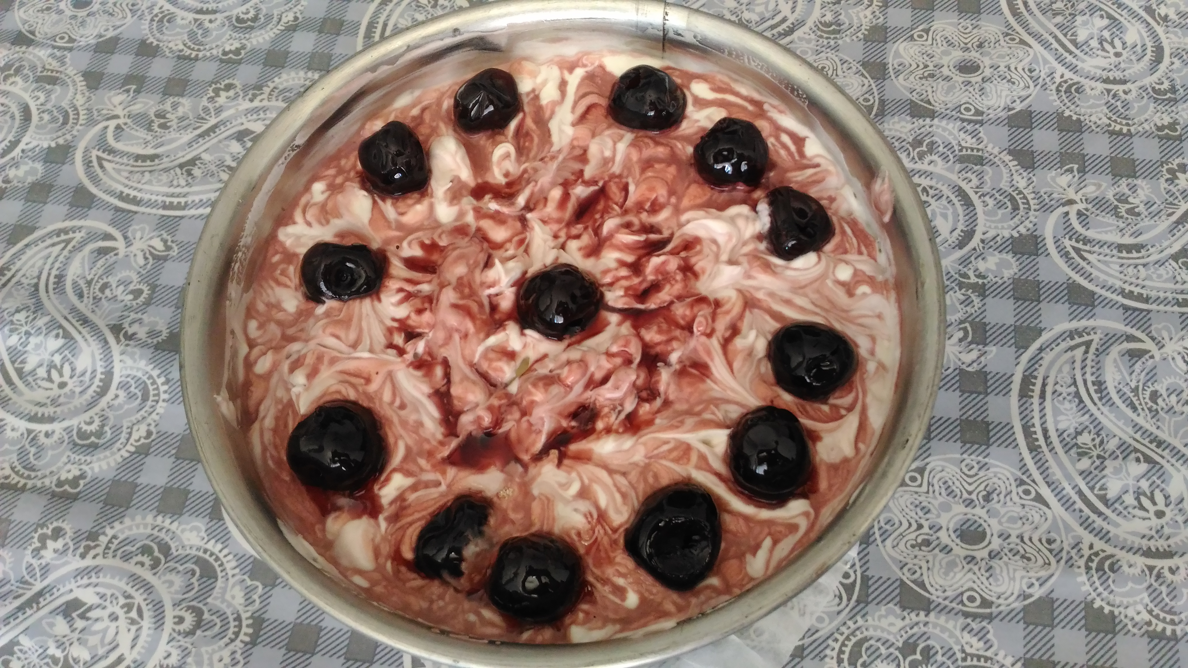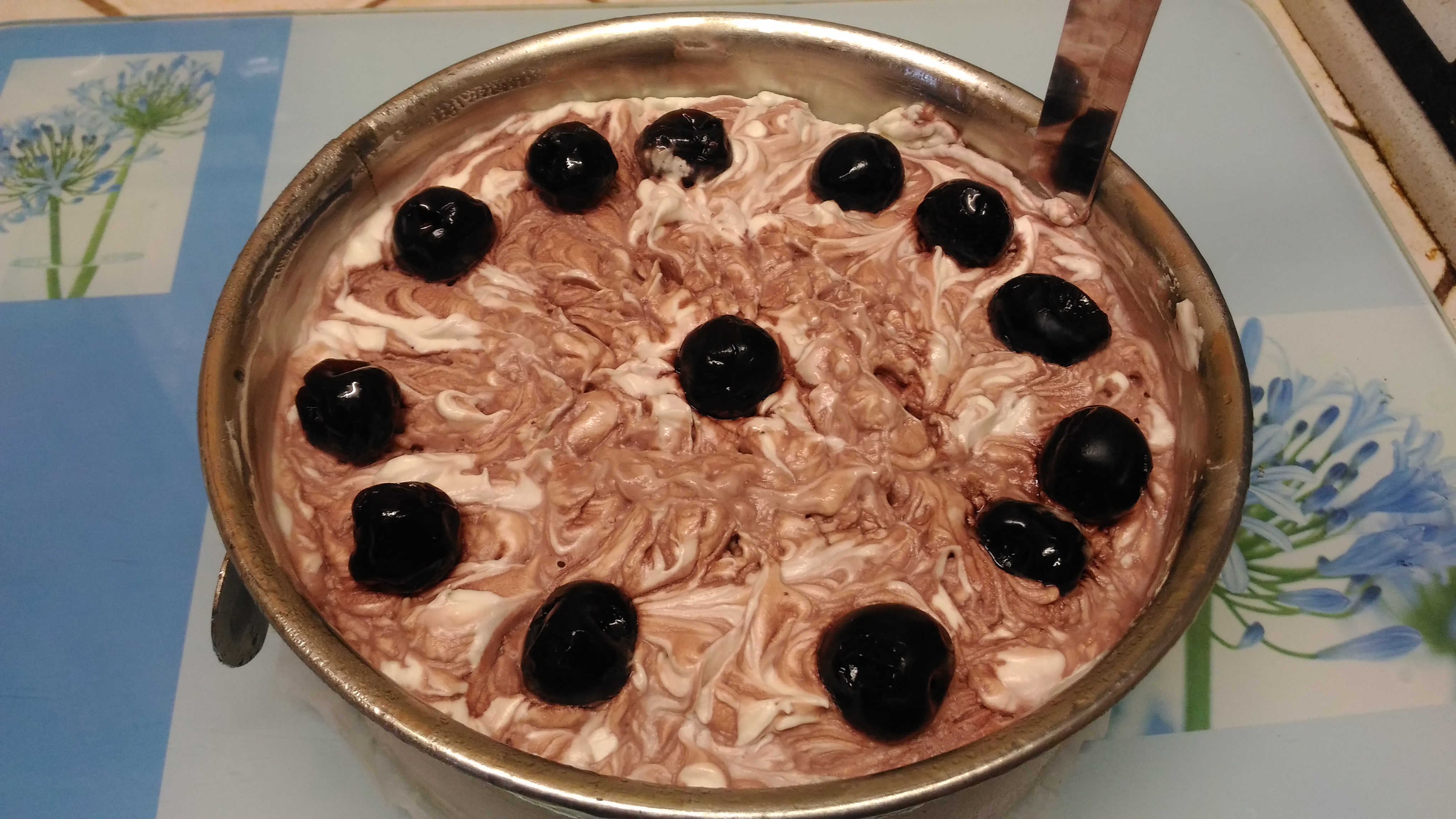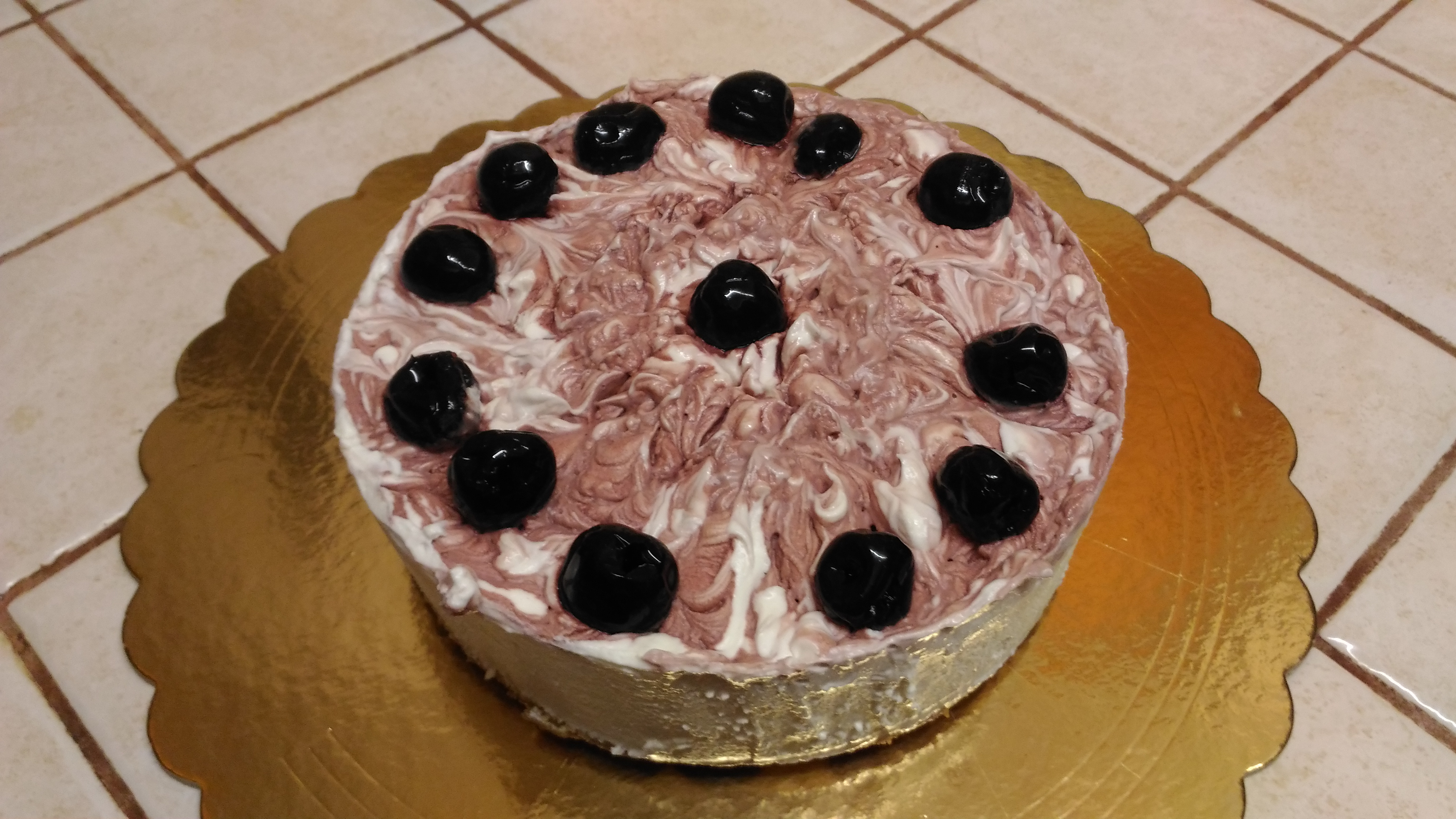 Decorare con le amarene a piacere e mettere in freezer per minimo 3 ore o addirittura tutta la notte se si vuole mangiare il giorno dopo.