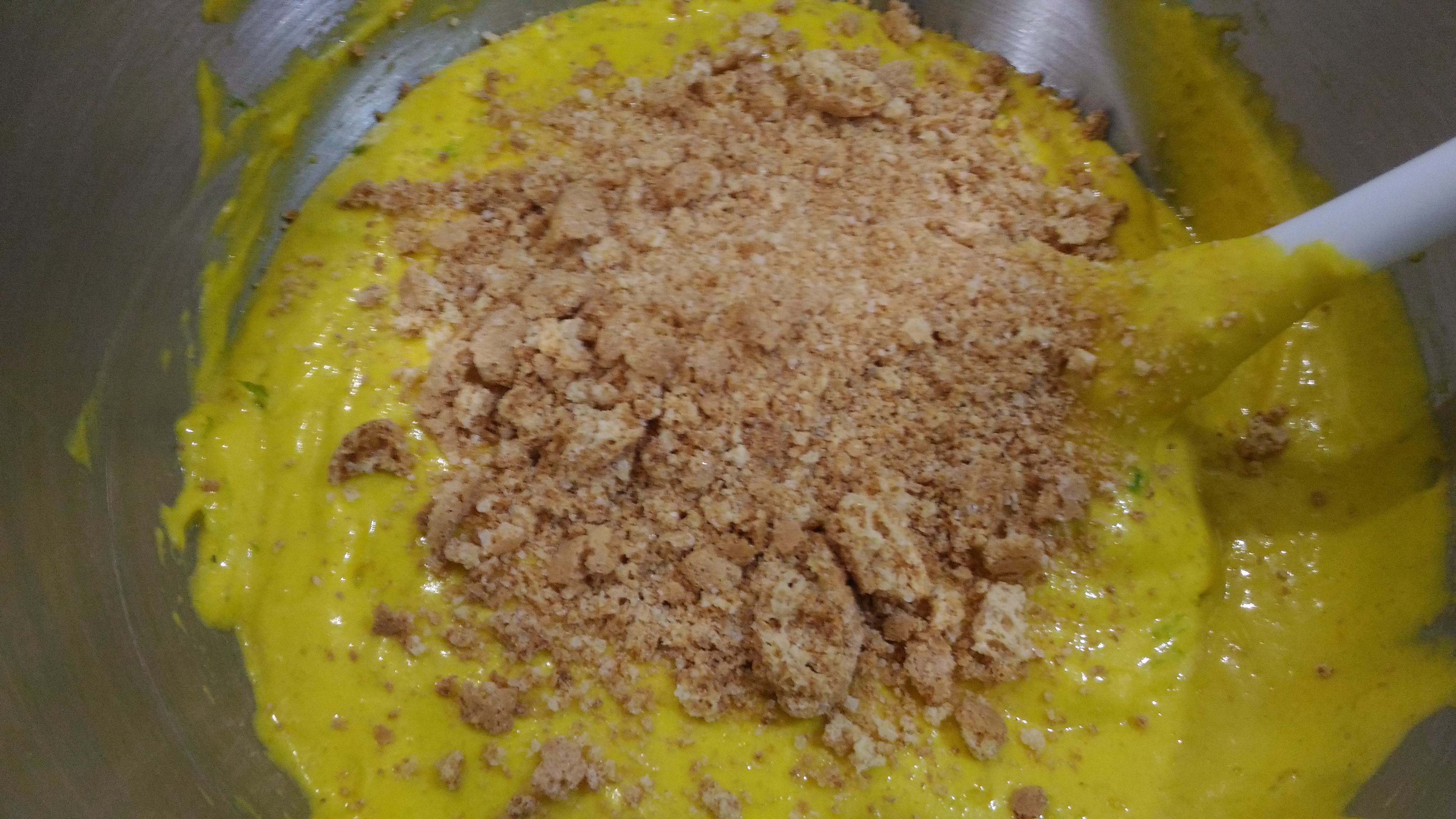 In fine mettere gli amaretti sbriciolati a mano grossolanamente.
